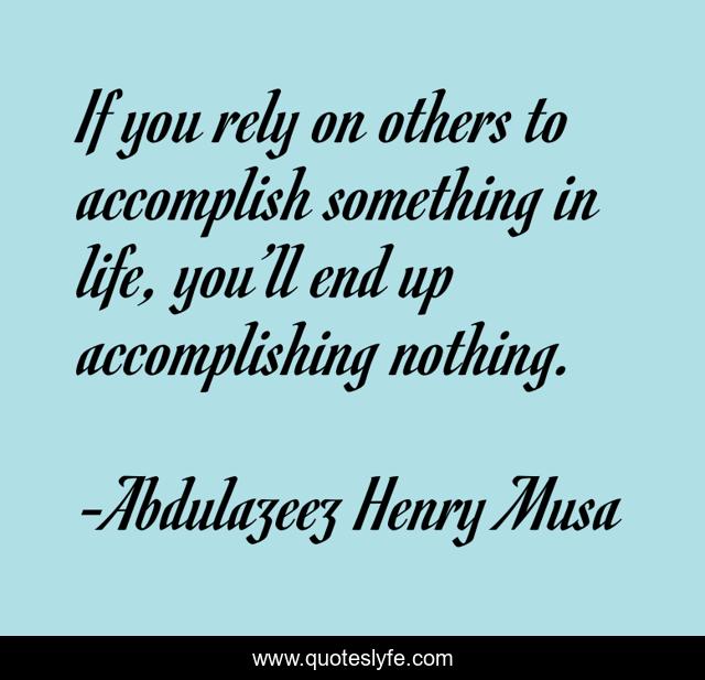 This page presents the quote "If you rely on others to accomplish something in life, you’ll end up accomplishing nothing.". Author of this quote is Abdulazeez Henry Musa. This quote is about positive, confidence, motivational, optimistic,.