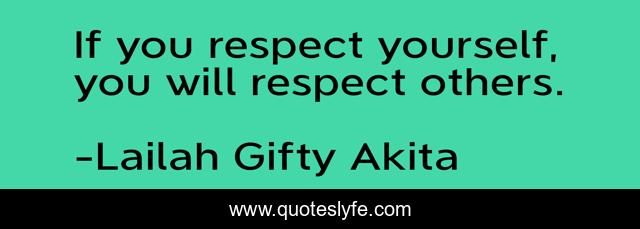 This page presents the quote "If you respect yourself, you will respect others.". Author of this quote is Lailah Gifty Akita. This quote is about respect, inspiring, self-respect, motivation, treating-others,.