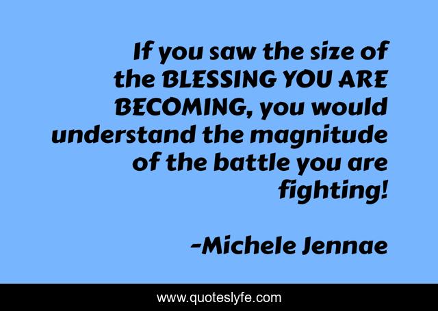 This page presents the quote "If you saw the size of the BLESSING YOU ARE BECOMING, you would understand the magnitude of the battle you are fighting!". Author of this quote is Michele Jennae. This quote is about blessings, self-confidence, why, personal-battles, inspiration,.
