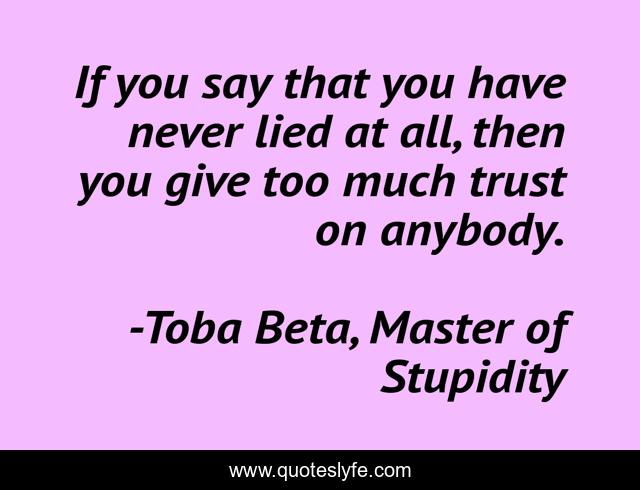 This page presents the quote "If you say that you have never lied at all, then you give too much trust on anybody.". Author of this quote is Toba Beta, Master of Stupidity. This quote is about lies, trust,.
