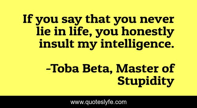 This page presents the quote "If you say that you never lie in life, you honestly insult my intelligence.". Author of this quote is Toba Beta, Master of Stupidity. This quote is about lie, life, exist, sin, fact,.