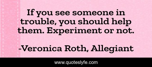 This page presents the quote "If you see someone in trouble, you should help them. Experiment or not.". Author of this quote is Veronica Roth, Allegiant. This quote is about help, tris,.
