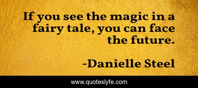 This page presents the quote "If you see the magic in a fairy tale, you can face the future.". Author of this quote is Danielle Steel. This quote is about see, magic,.