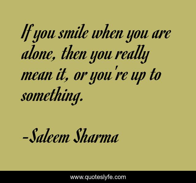 This page presents the quote "If you smile when you are alone, then you really mean it, or you're up to something.". Author of this quote is Saleem Sharma. This quote is about naughty, thinking, thought, smile, smiling, happiness,.