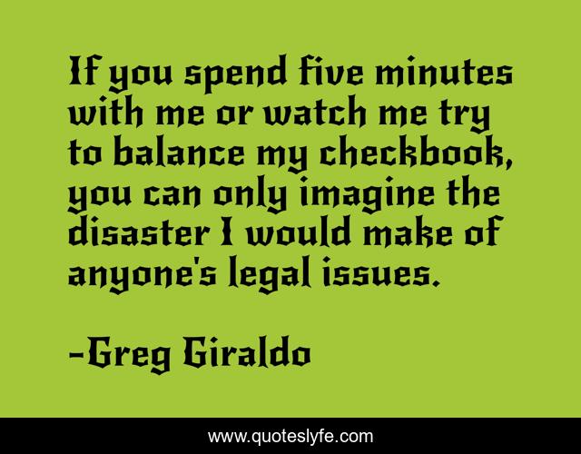 This page presents the quote "If you spend five minutes with me or watch me try to balance my checkbook, you can only imagine the disaster I would make of anyone's legal issues.". Author of this quote is Greg Giraldo. This quote is about me, balance,.