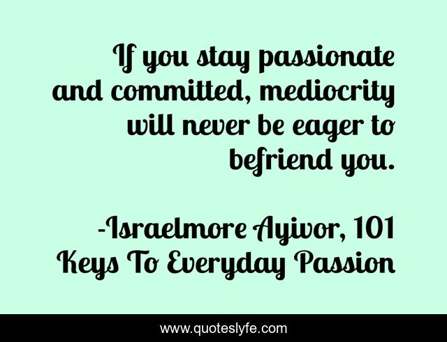 "Israelmore Ayivor, 101 Keys To Everyday Passion Quotes." Quoteslyfe.com, 2025. Sun. 07 Dec. 2025. <https://www.quoteslyfe.com/quote/If-you-stay-passionate-and-committed-mediocrity-92432>.