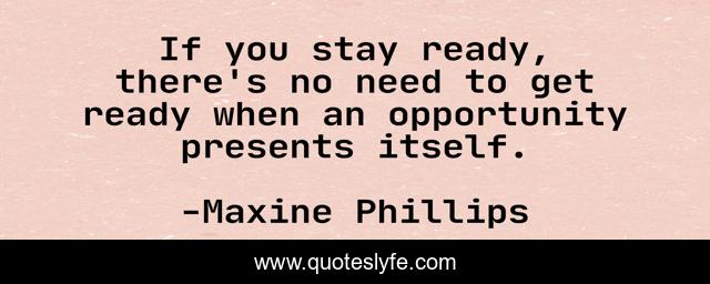 This page presents the quote "If you stay ready, there's no need to get ready when an opportunity presents itself.". Author of this quote is Maxine Phillips. .