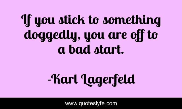 This page presents the quote "If you stick to something doggedly, you are off to a bad start.". Author of this quote is Karl Lagerfeld. This quote is about sticking, style, designer, beauty, karl-lagerfeld, start, bad, good, stick,.
