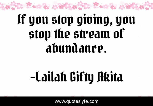 This page presents the quote "If you stop giving, you stop the stream of abundance.". Author of this quote is Lailah Gifty Akita. This quote is about abundance, giving, inspiring, living,.