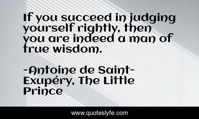 This page presents the quote "If you succeed in judging yourself rightly, then you are indeed a man of true wisdom.". Author of this quote is Antoine de Saint-Exupéry, The Little Prince. This quote is about judgement, wisdom,.