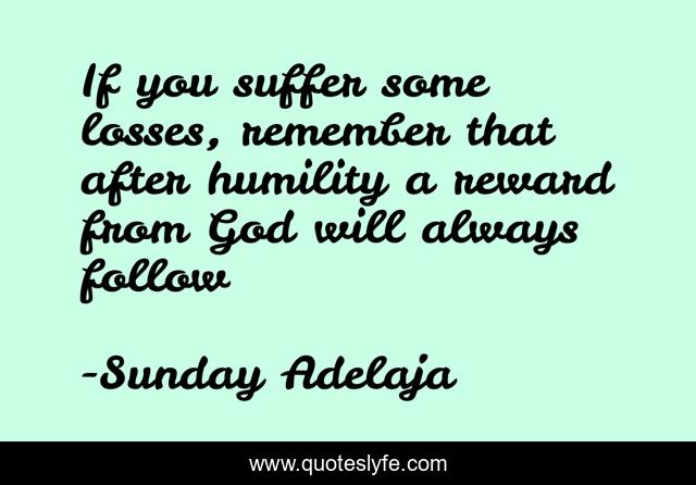 This page presents the quote "If you suffer some losses, remember that after humility a reward from God will always follow". Author of this quote is Sunday Adelaja. This quote is about reward, remember, god, losses, humility, follow, suffer,.