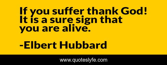 This page presents the quote "If you suffer thank God! It is a sure sign that you are alive.". Author of this quote is Elbert Hubbard. .