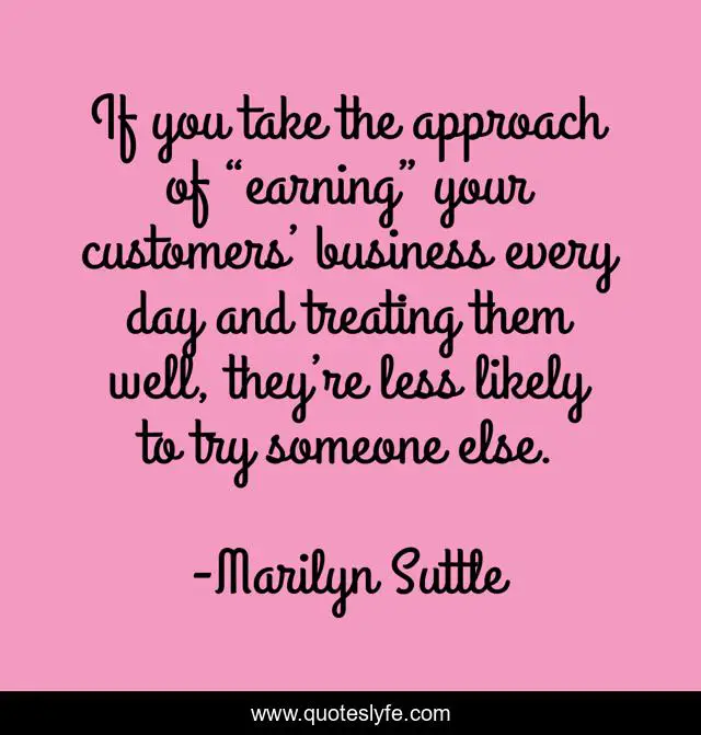 This page presents the quote "If you take the approach of “earning” your customers’ business every day and treating them well, they’re less likely to try someone else.". Author of this quote is Marilyn Suttle. This quote is about business, customer-service,.