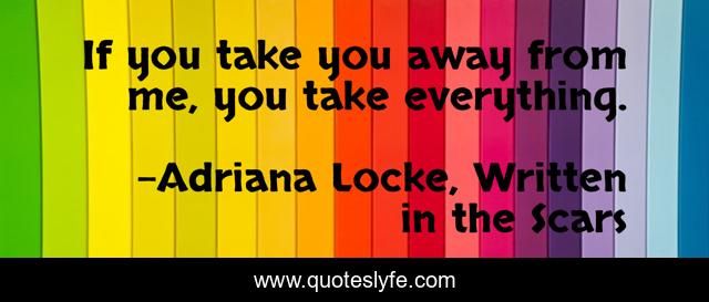 This page presents the quote "If you take you away from me, you take everything.". Author of this quote is Adriana Locke, Written in the Scars. This quote is about love, marriage, affection,.