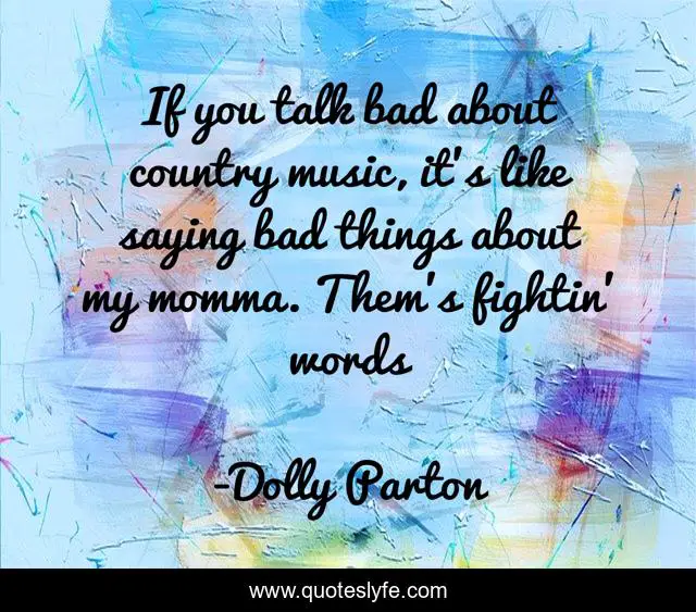 This page presents the quote "If you talk bad about country music, it's like saying bad things about my momma. Them's fightin' words". Author of this quote is Dolly Parton. This quote is about country-music, humor, music,.