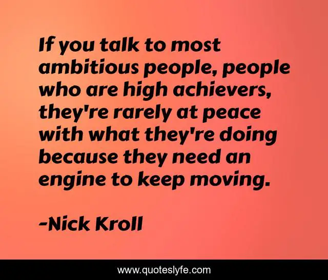 This page presents the quote "If you talk to most ambitious people, people who are high achievers, they're rarely at peace with what they're doing because they need an engine to keep moving.". Author of this quote is Nick Kroll. This quote is about moving, people,.