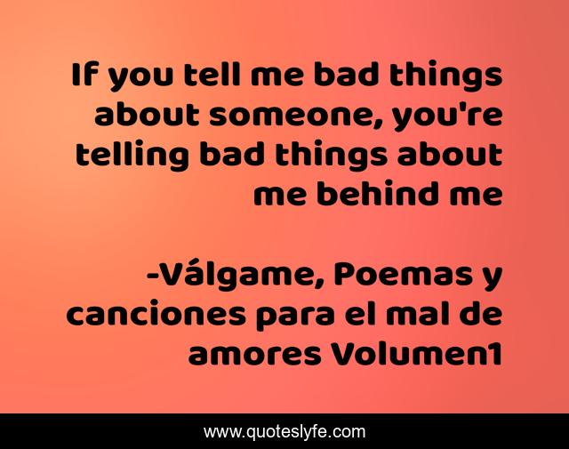 "Válgame, Poemas y canciones para el mal de amores Volumen1 Quotes." Quoteslyfe.com, 2025. Fri. 05 Dec. 2025. <https://www.quoteslyfe.com/quote/If-you-tell-me-bad-things-about-103064>.