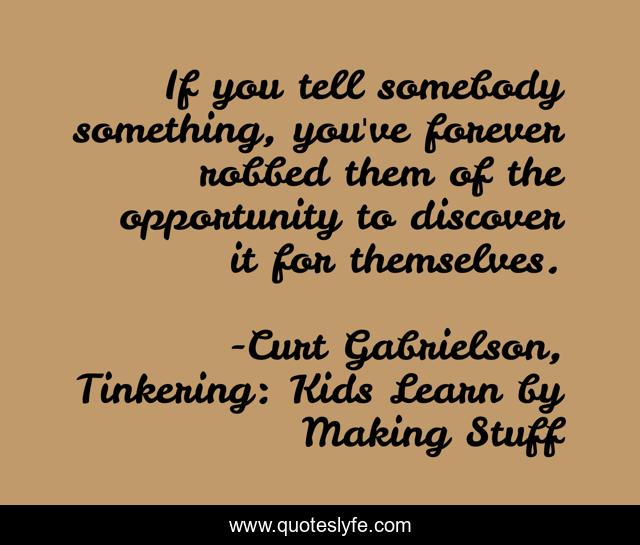 "Curt Gabrielson, Tinkering: Kids Learn by Making Stuff Quotes." Quoteslyfe.com, 2025. Sat. 06 Dec. 2025. <https://www.quoteslyfe.com/quote/If-you-tell-somebody-something-you-ve-117103>.
