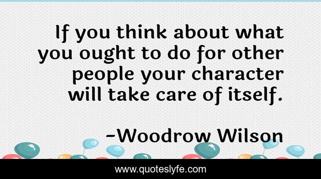 This page presents the quote "If you think about what you ought to do for other people your character will take care of itself.". Author of this quote is Woodrow Wilson. This quote is about character, personality,.