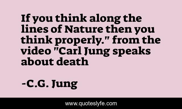This page presents the quote "If you think along the lines of Nature then you think properly." from the video "Carl Jung speaks about death". Author of this quote is C.G. Jung. This quote is about thinking, jung, nature,.