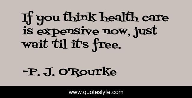 This page presents the quote "If you think health care is expensive now, just wait 'til it's free.". Author of this quote is P. J. O'Rourke. This quote is about think, free, care,.