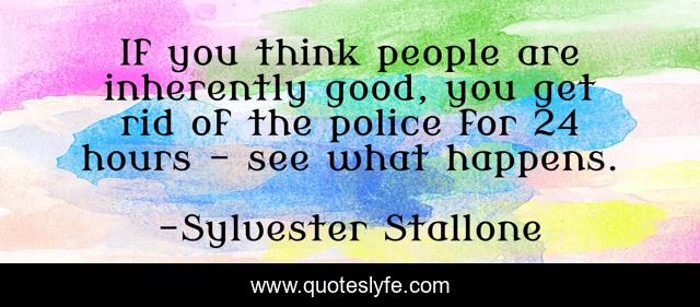 This page presents the quote "If you think people are inherently good, you get rid of the police for 24 hours - see what happens.". Author of this quote is Sylvester Stallone. This quote is about police, think, people,.