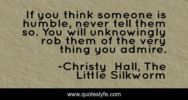 "Christy Hall, The Little Silkworm Quotes." Quoteslyfe.com, 2025. Mon. 08 Dec. 2025. <https://www.quoteslyfe.com/quote/If-you-think-someone-is-humble-never-147402>.