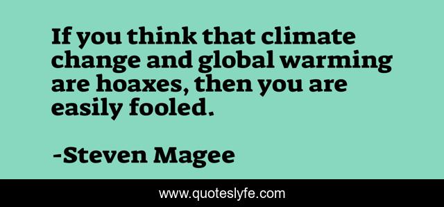 This page presents the quote "If you think that climate change and global warming are hoaxes, then you are easily fooled.". Author of this quote is Steven Magee. This quote is about easily, climate, global, change, hoaxes, fooled, think, warming,.