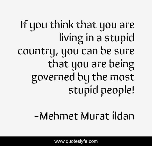 This page presents the quote "If you think that you are living in a stupid country, you can be sure that you are being governed by the most stupid people!". Author of this quote is Mehmet Murat ildan. This quote is about government, country, being-governed, stupid, govern, stupid-people, governments,.