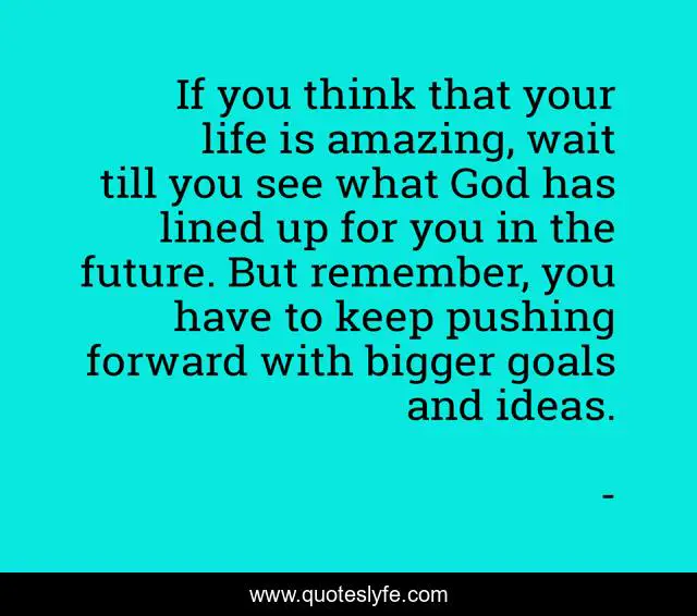 This page presents the quote "If you think that your life is amazing, wait till you see what God has lined up for you in the future. But remember, you have to keep pushing forward with bigger goals and ideas.". Author of this quote is . This quote is about edmond-mbiaka, ideas, keep-pushing-forward, future, your-life-is-amazing, bigger-goals,.