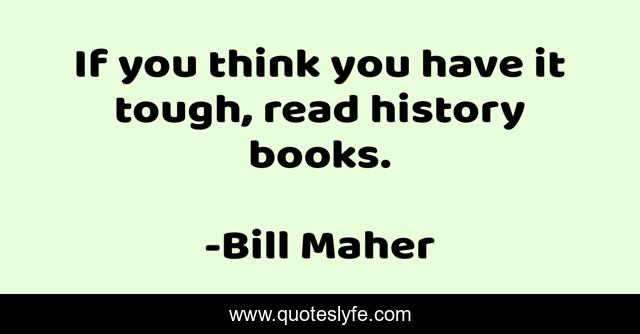 This page presents the quote "If you think you have it tough, read history books.". Author of this quote is Bill Maher. This quote is about tough, think,.