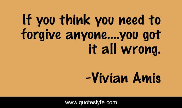This page presents the quote "If you think you need to forgive anyone....you got it all wrong.". Author of this quote is Vivian Amis. This quote is about healing, blessings, forgiveness, forgive, others,.