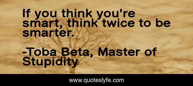 This page presents the quote "If you think you're smart, think twice to be smarter.". Author of this quote is Toba Beta, Master of Stupidity. This quote is about think-twice, smarter, life, ego, smart,.