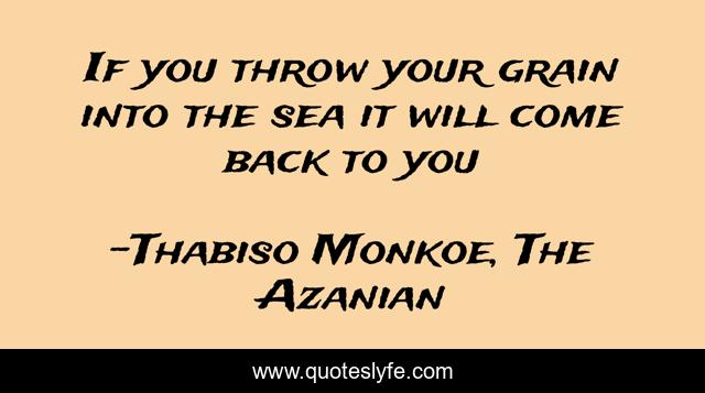 This page presents the quote "If you throw your grain into the sea it will come back to you". Author of this quote is Thabiso Monkoe, The Azanian. .