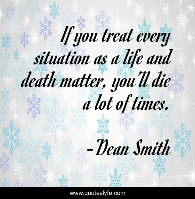 This page presents the quote "If you treat every situation as a life and death matter, you’ll die a lot of times.". Author of this quote is Dean Smith. .