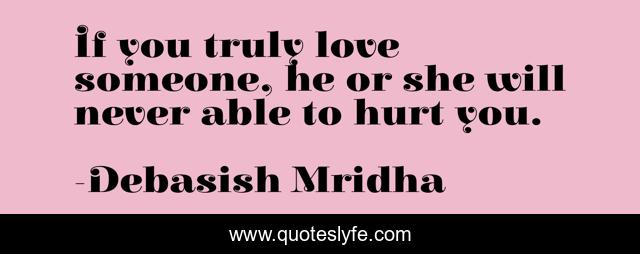 This page presents the quote "If you truly love someone, he or she will never able to hurt you.". Author of this quote is Debasish Mridha. This quote is about life, love, knowledge, inspirational, intelligence, philosophy, wisdom, quotes, affection,.