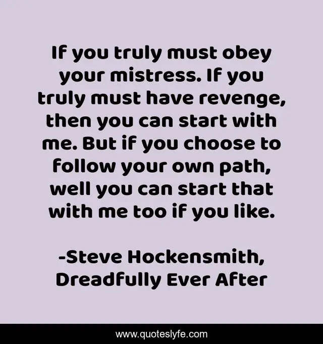 "Steve Hockensmith, Dreadfully Ever After Quotes." Quoteslyfe.com, 2025. Fri. 05 Dec. 2025. <https://www.quoteslyfe.com/quote/If-you-truly-must-obey-your-mistress-148633>.