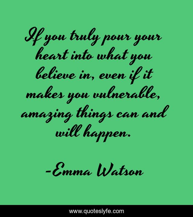 This page presents the quote "If you truly pour your heart into what you believe in, even if it makes you vulnerable, amazing things can and will happen.". Author of this quote is Emma Watson. .