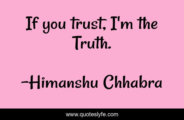 This page presents the quote "If you trust, I'm the Truth.". Author of this quote is Himanshu Chhabra. This quote is about trust, truth,.