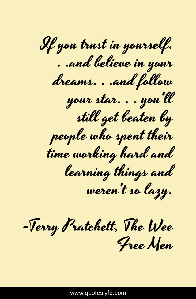 "Terry Pratchett, The Wee Free Men Quotes." Quoteslyfe.com, 2025. Mon. 08 Dec. 2025. <https://www.quoteslyfe.com/quote/If-you-trust-in-yourself-and-believe-71734>.