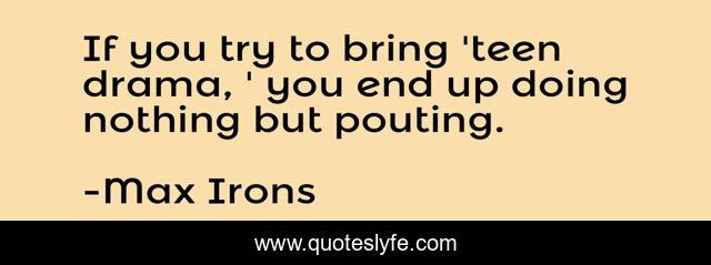 This page presents the quote "If you try to bring 'teen drama, ' you end up doing nothing but pouting.". Author of this quote is Max Irons. This quote is about drama, end,.