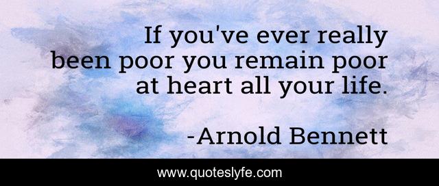 This page presents the quote "If you've ever really been poor you remain poor at heart all your life.". Author of this quote is Arnold Bennett. .
