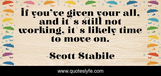 This page presents the quote "If you’ve given your all, and it's still not working, it's likely time to move on.". Author of this quote is Scott Stabile. This quote is about let-go, life, move-on, motivation, inspiration,.