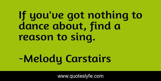This page presents the quote "If you've got nothing to dance about, find a reason to sing.". Author of this quote is Melody Carstairs. This quote is about confidence, dance, freedom, motivational, liberation, optimistic, sing, smile, positive,.