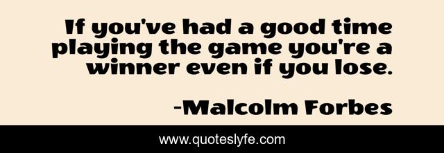 This page presents the quote "If you've had a good time playing the game you're a winner even if you lose.". Author of this quote is Malcolm Forbes. .