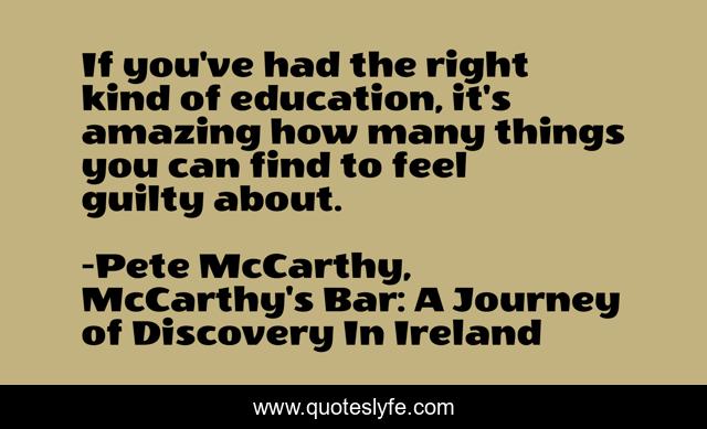 This page presents the quote "If you've had the right kind of education, it's amazing how many things you can find to feel guilty about.". Author of this quote is Pete McCarthy, McCarthy's Bar: A Journey of Discovery In Ireland. This quote is about education, guilt,.