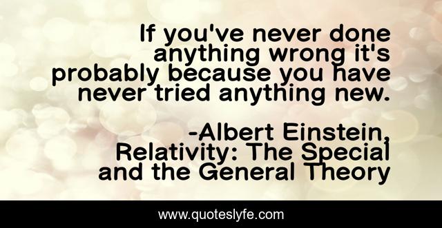 This page presents the quote "If you've never done anything wrong it's probably because you have never tried anything new.". Author of this quote is Albert Einstein, Relativity: The Special and the General Theory. This quote is about science, physics, einstein,.