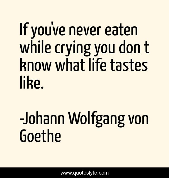 This page presents the quote "If you've never eaten while crying you don t know what life tastes like.". Author of this quote is Johann Wolfgang von Goethe. This quote is about life, crying, reality,.