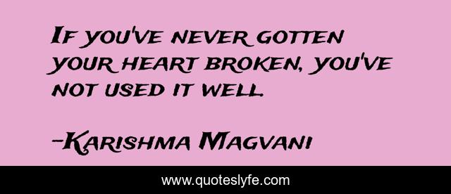 This page presents the quote "If you've never gotten your heart broken, you've not used it well.". Author of this quote is Karishma Magvani. This quote is about heart, life, love, heartbreak, heartbroken, affection,.