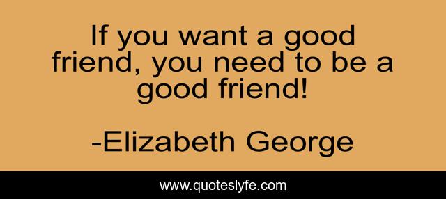 This page presents the quote "If you want a good friend, you need to be a good friend!". Author of this quote is Elizabeth George. This quote is about faith, good, love, god, blessed, friend, affection,.